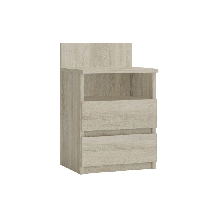 Nočný stolík M-1. Moderný vzhľad hodiaci sa do súčasných interiérov. Kvalitné spracovanie, vyrobené z laminátu 16 mm. Dve praktické zásuvky a polička. Dodávaný v rozloženom stave s montážnou sadou a návodom.
