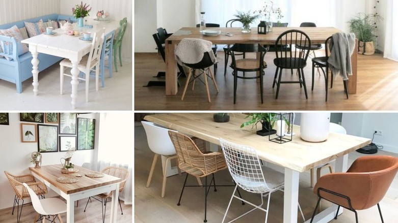 Jedálenský stôl a stoličky sú ďalšími kúskami, ktoré zoženiete veľmi jednoducho. Aj keď v bazároch alebo na pôjdoch nenarazíte na potrebný počet rovnakých stoličiek, nevadí. Každá stolička v inom štýle je veľmi moderný spôsob ako zariadiť priestor pre stolovánie.
