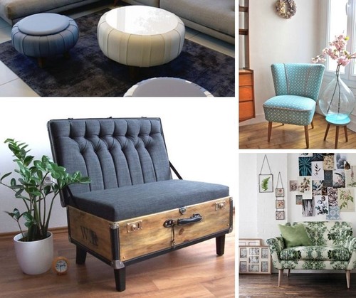 Výborný nápad je umiestniť do obývacíej izby solitér v podobe štýlového kresla, či už nejaký renovovaný retro kúsok (rozhodne sa nebojte výrazných vzorovaných látok, jedná sa o kúsok, ktorý má zaujať na prvý pohľad) alebo napríklad DIY projekt zo starého kufra či taburet z pneumatiky.