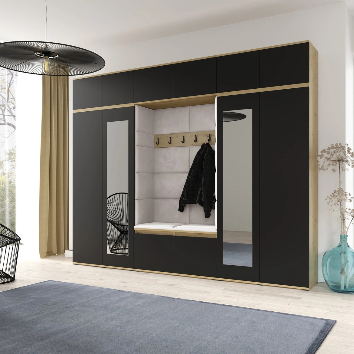 Či už máte domov v modernom štýle alebo skôr vidieckom štýle, alebo si potrpíte na extravaganciu, vďaka bohatej ponuke si vyberú predsieňové steny skutočne všetci záujemcovia. Do väčších predsiení si môžete kúpiť predsieňovú stenu, ktorá je výškovo takmer na celú stenu, skladá sa z dvoch úzkych skríň, vedľa ktorých je skrinka na topánky so šírkou, ako tieto skrine a hore sú 4 nástavce, ktoré sa dávajú na šatníkové skrine. Tým tvorí predsieňová stena otočené písmeno U, pričom uprostred písmena U sú umiestnené vešiaky na odloženie zvrškov. Na dverách skríň môžu byť umiestnené zrkadlá.