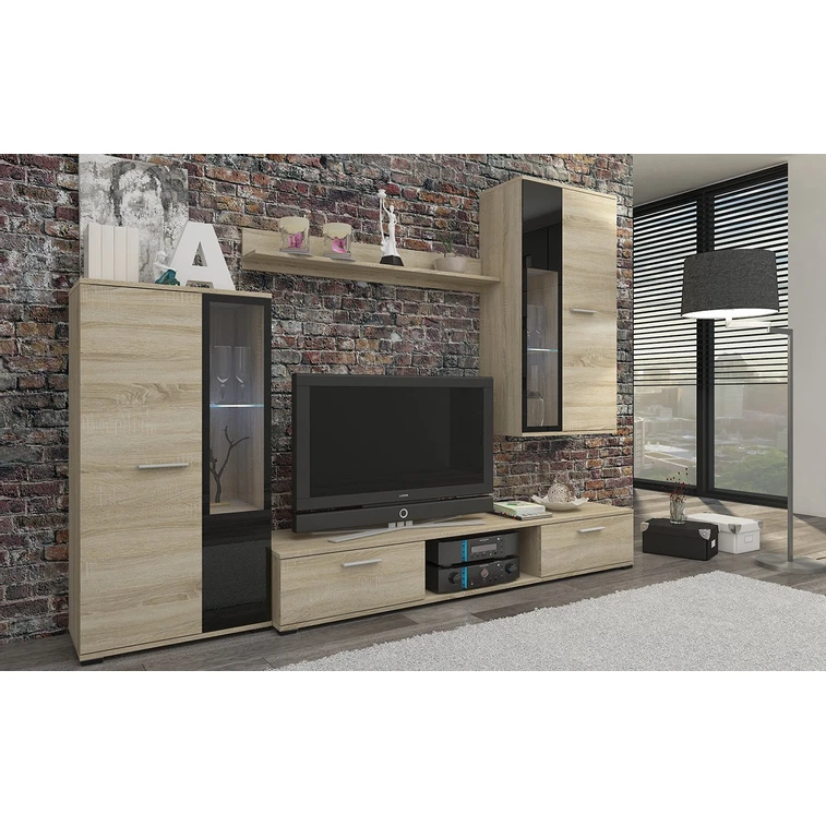 Obývacia stena OSKAR 5 je príkladom modernej zostavy nábytku. Stena je vyrobená z laminovanej dosky so štruktúrou dreva, ktorá vyzerá úžasne v každej miestnosti. Jednotlivé elementy zostavy je možné umiestniť samostatne presne tak, aby sa stena prispôsobila Vašej miestnosti a stala sa funkčnou. Sklenené časti dodávajú čaro a oživujú celkový vzhľad steny.