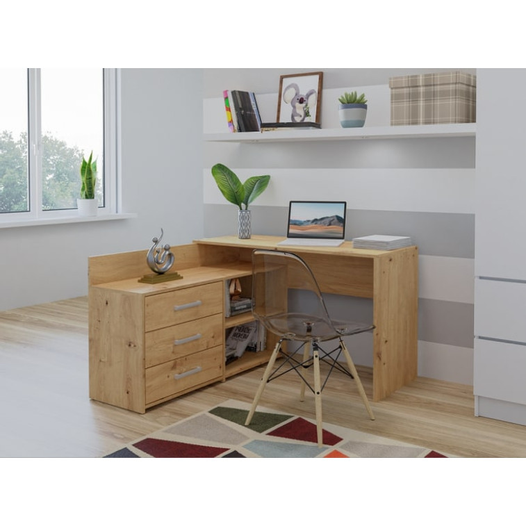 Tento moderný písací stôl v dekore dub artisan je ideálnym riešením pre každú domácnosť. Jeho jednoduchý dizajn a kvalitné materiály zaručujú vysokú trvanlivosť a pohodlie. Kompaktné rozmery umožňujú jednoduchú inštaláciu do akéhokoľvek priestoru a odolná pracovná doska je ideálna na prácu s počítačom alebo na písanie.