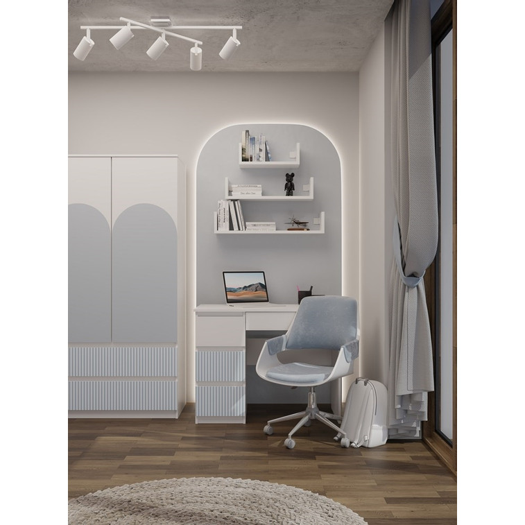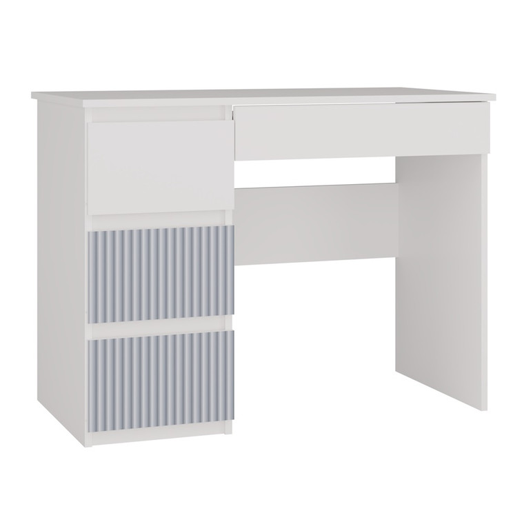Jednoduchý stôl v modernom farebnom prevedení. Stôl je vhodný do detskej izby. Využitie nájde pri práci s počítačom aj pri písaní domácich úloh. Vďaka svojej veľkosti sa dobre zmestí aj do menších priestorov. Bezúchytkové čelá zásuviek zaisťujú pohodlné používanie.