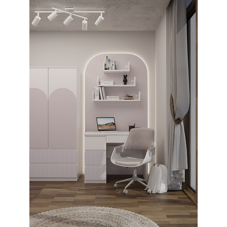 Jednoduchý stôl v modernom farebnom prevedení. Stôl je vhodný do detskej izby. Využitie nájde pri práci s počítačom aj pri písaní domácich úloh. Vďaka svojej veľkosti sa dobre zmestí aj do menších priestorov. Bezúchytkové čelá zásuviek zaisťujú pohodlné používanie.