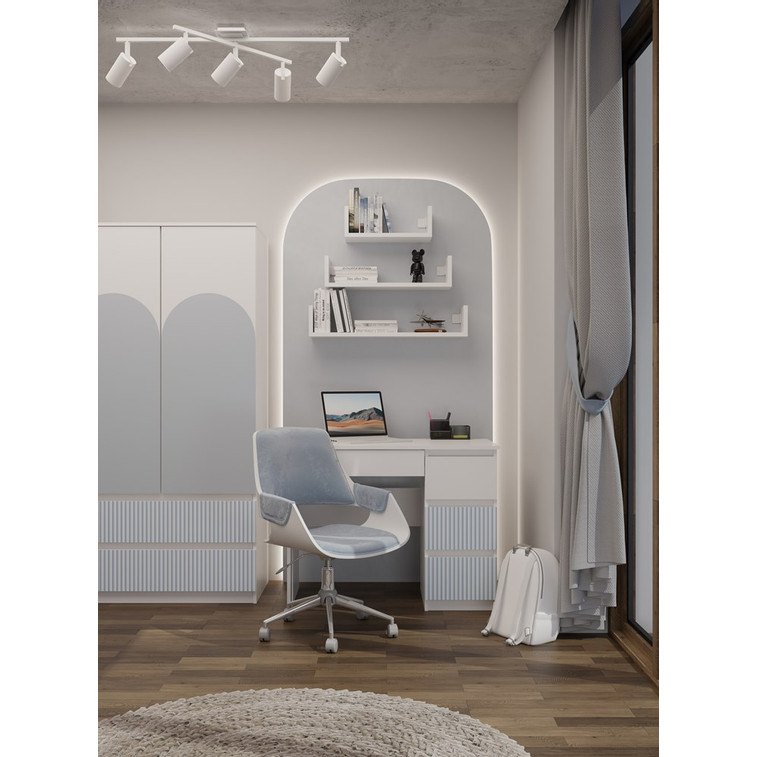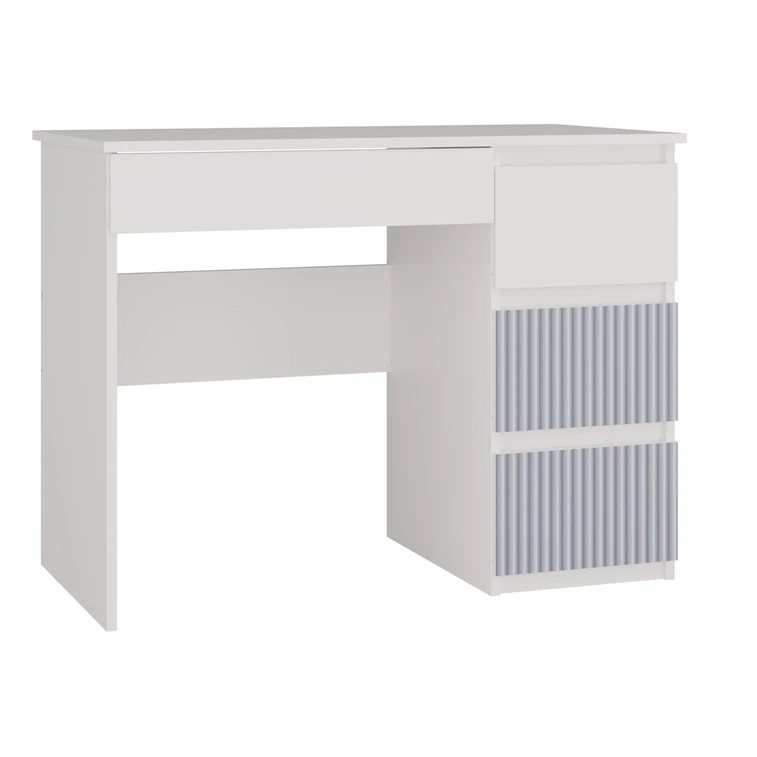 Jednoduchý stôl v modernom farebnom prevedení. Stôl je vhodný do detskej izby. Využitie nájde pri práci s počítačom aj pri písaní domácich úloh. Vďaka svojej veľkosti sa dobre zmestí aj do menších priestorov. Bezúchytkové čelá zásuviek zaisťujú pohodlné používanie.