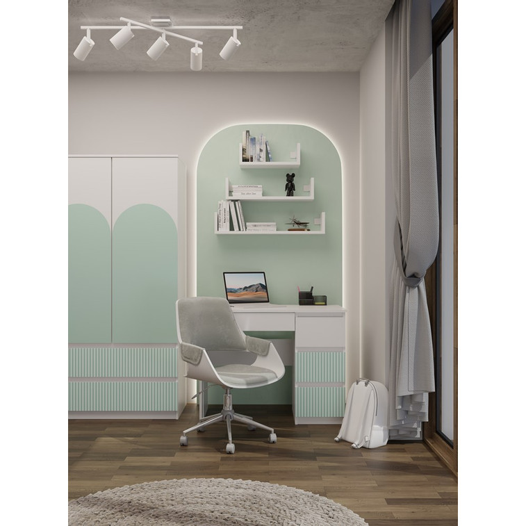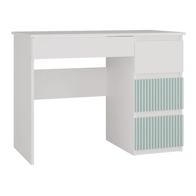 Jednoduchý stôl v modernom farebnom prevedení. Stôl je vhodný do detskej izby. Využitie nájde pri práci s počítačom aj pri písaní domácich úloh. Vďaka svojej veľkosti sa dobre zmestí aj do menších priestorov. Bezúchytkové čelá zásuviek zaisťujú pohodlné používanie.