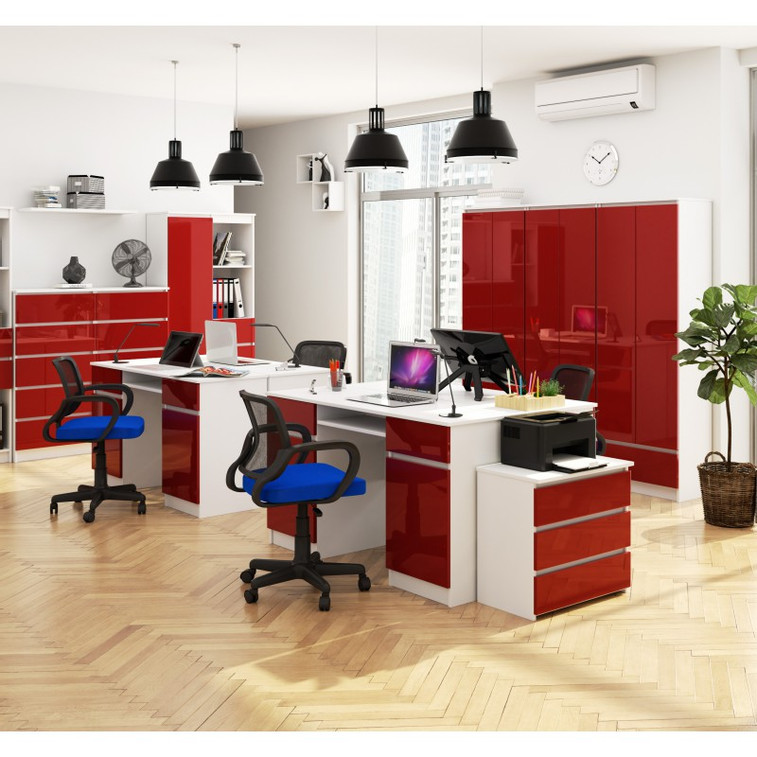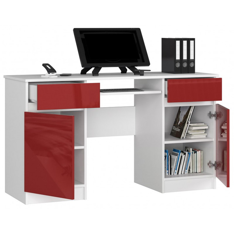 Počítačový stôl A5 biela/červená lesk