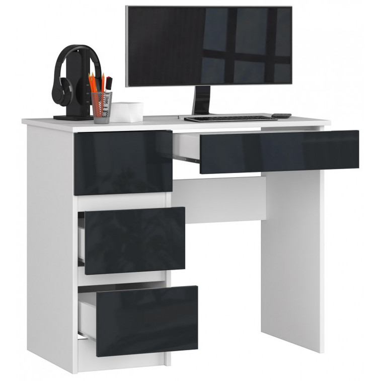 Počítačový stôl A7 ľavá biela/grafit lesk