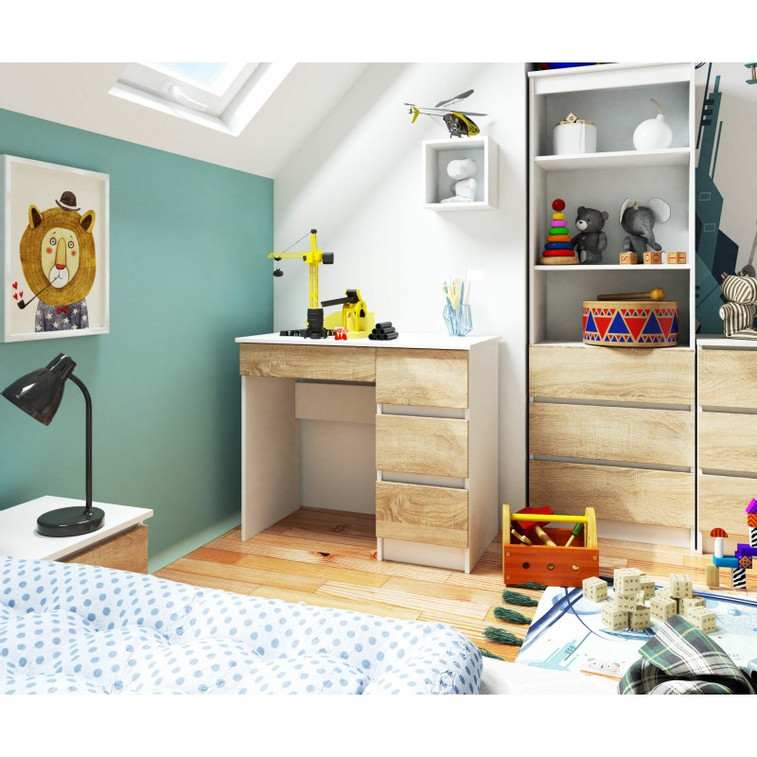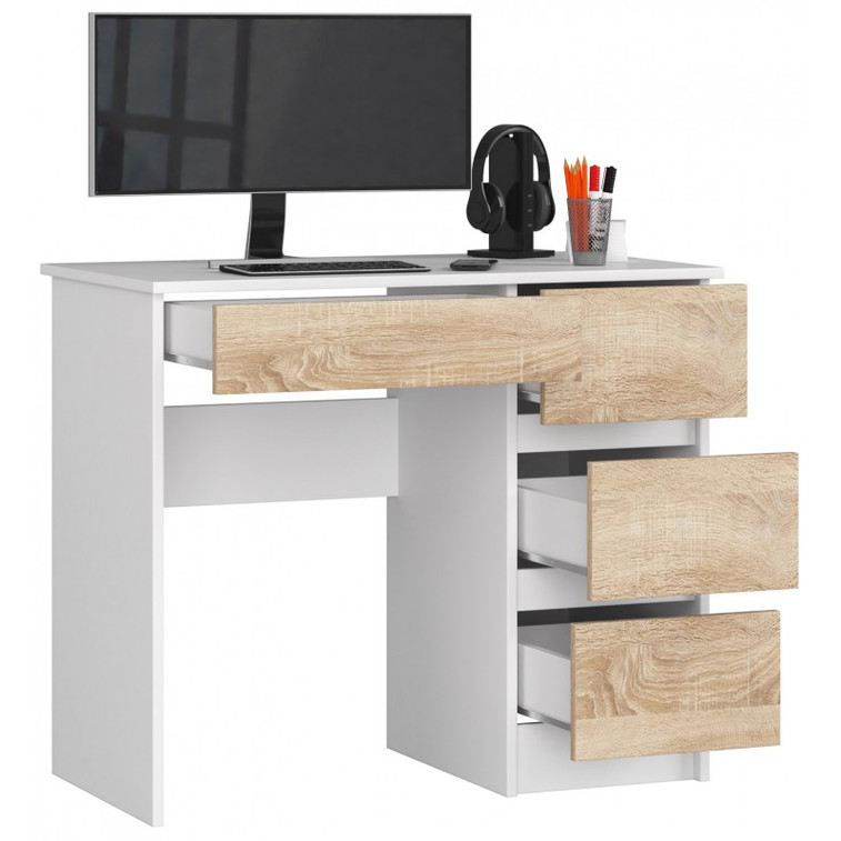 Jednoduchý písací stôl v modernom farebnom prevedení. Stôl je vhodný do kancelárie aj do detskej izby. Využitie nájde pri práci s počítačom aj pri písaní domácich úloh. Vďaka svojej veľkosti sa dobre zmestí aj do menších priestorov.