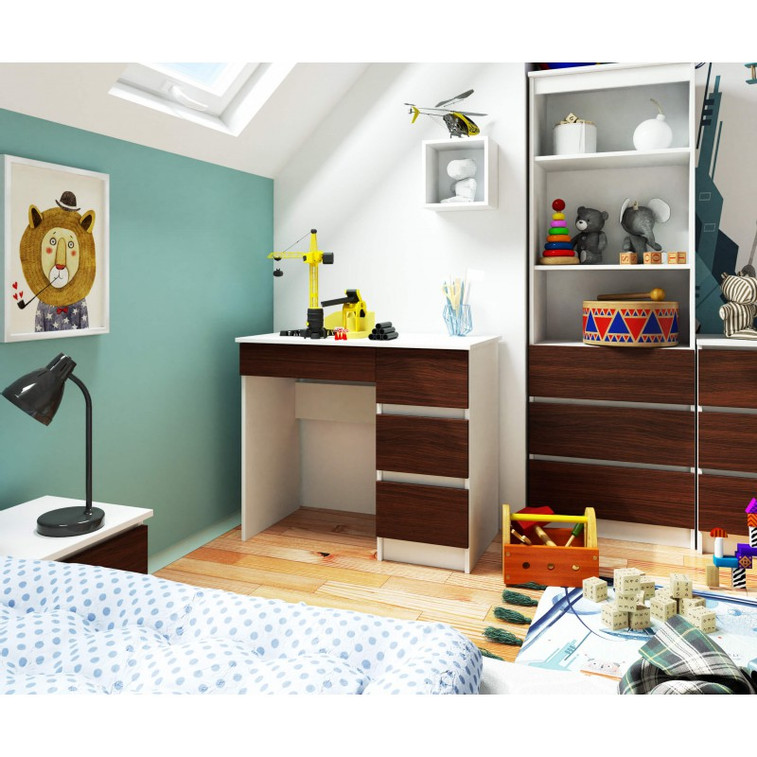 Jednoduchý písací stôl v modernom farebnom prevedení. Stôl je vhodný do kancelárie aj do detskej izby. Využitie nájde pri práci s počítačom aj pri písaní domácich úloh. Vďaka svojej veľkosti sa dobre zmestí aj do menších priestorov.