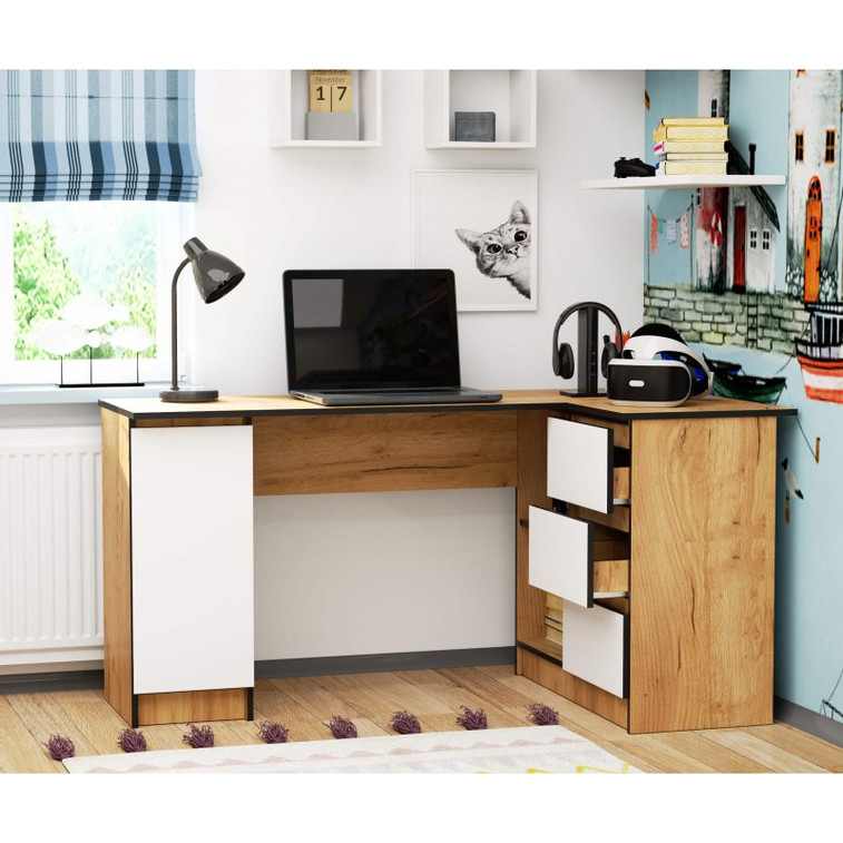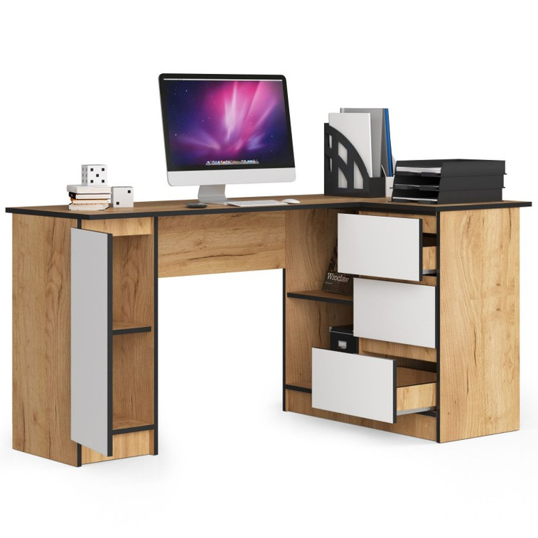 Počítačový stôl B20 155 cm, pravá, remeselný dub/biela.