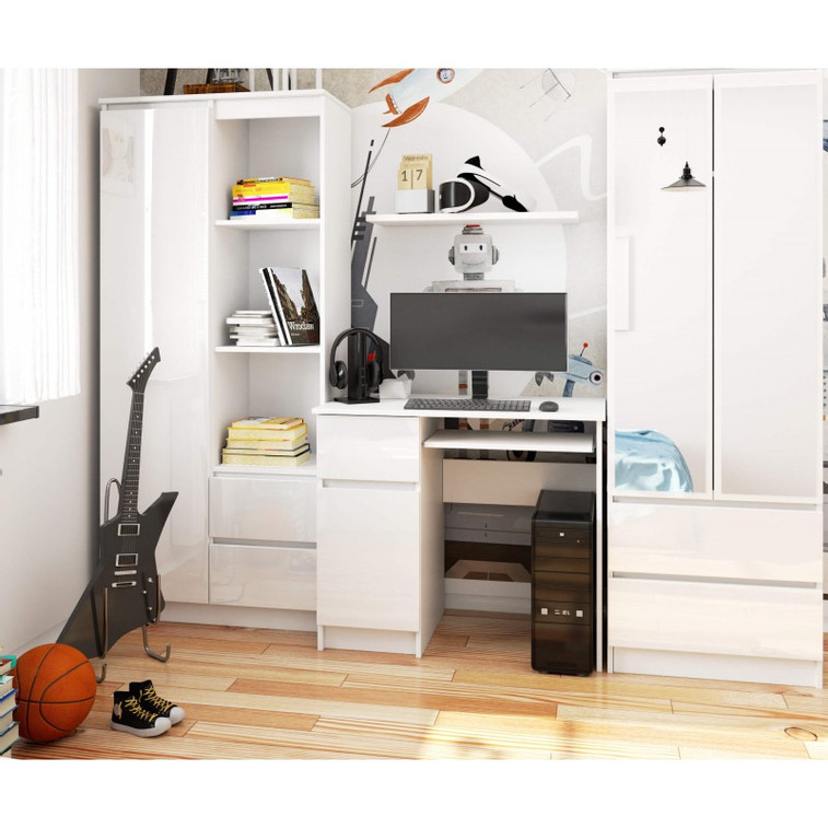 Jednoduchý písací stôl v modernom bielom prevedení. Stôl je vhodný do kancelárie aj do detskej izby. Využitie nájde pri práci s počítačom aj pri písaní domácich úloh. Vďaka svojej veľkosti sa dobre zmestí aj do menších priestorov.