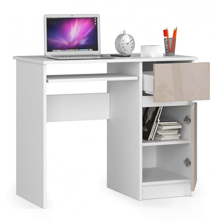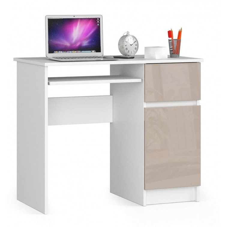 Počítačový stôl PIKSEL pravá biela/cappuccino lesk