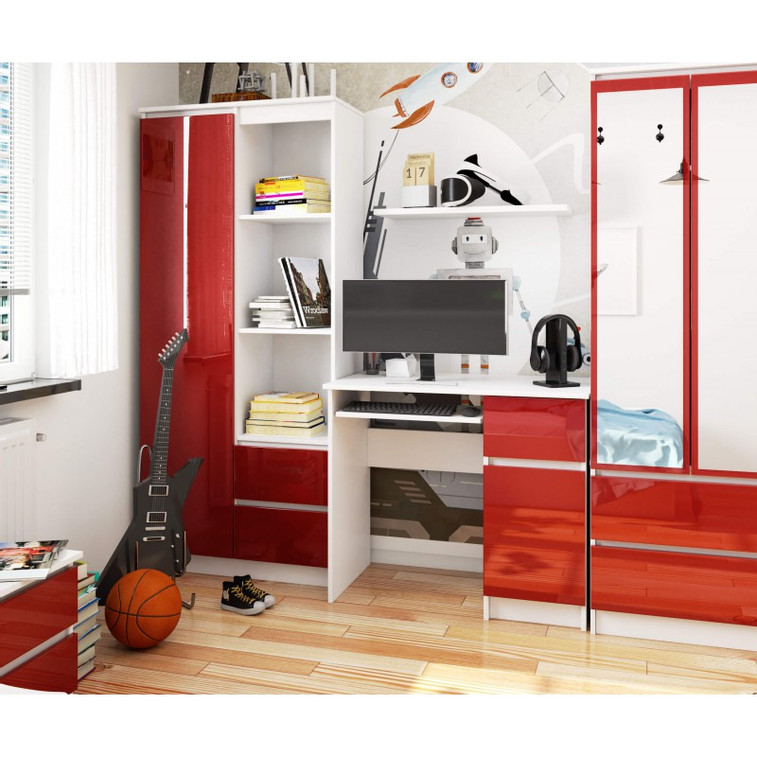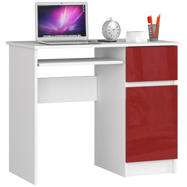Počítačový stôl PIKSEL pravá biela/červená lesk