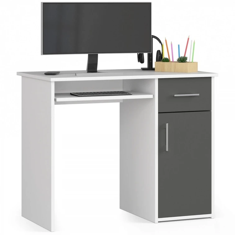 Počítačový stôl Pin. Jednoduchý stôl v modernom farebnom prevedení. Stôl je vhodný do kancelárie aj do detskej izby. Využitie nájde pri práci s počítačom aj pri písaní domácich úloh. Vďaka svojej veľkosti sa dobre zmestí aj do menších priestorov.