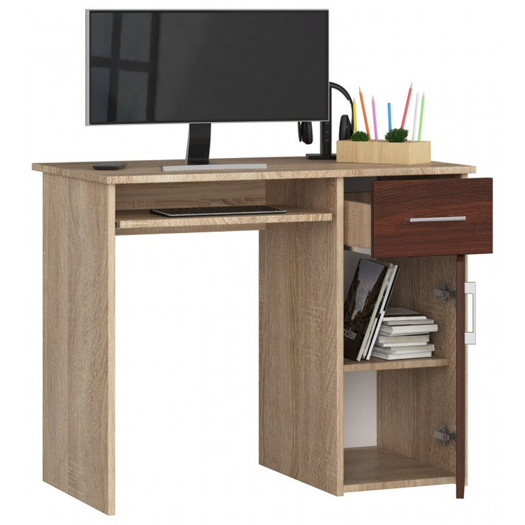 Jednoduchý písací stôl v modernom farebnom prevedení. Stôl je vhodný do kancelárie aj do detskej izby. Využitie nájde pri práci s počítačom aj pri písaní domácich úloh. Vďaka svojej veľkosti sa dobre zmestí aj do menších priestorov.