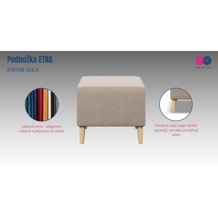 Kvalitná čalúnená podnožka ETNA - Kronos 50x50 cm je vyrobená z pevných, vysoko kvalitných materiálov. Nohy sú vyrobené z dreva.