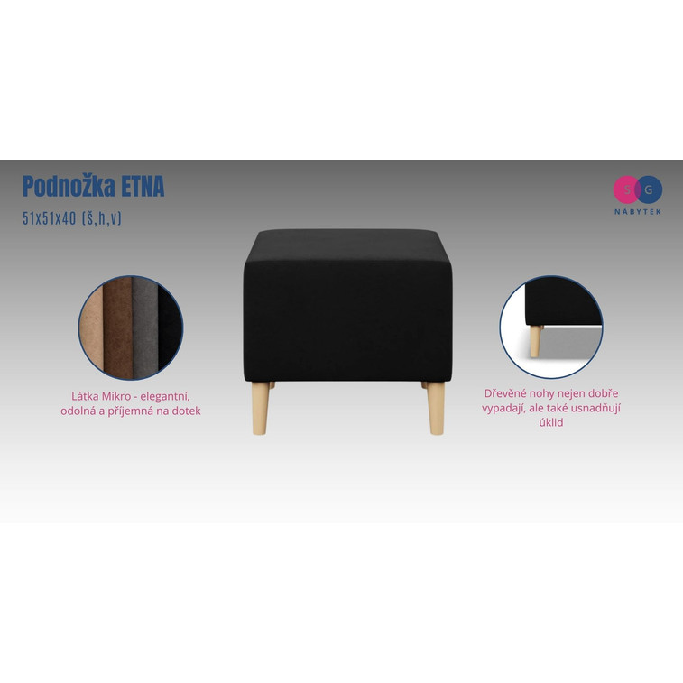 Kvalitná čalúnená podnožka ETNA - Mikro 50x50 cm je vyrobená z pevných, vysoko kvalitných materiálov. Nohy sú vyrobené z dreva.