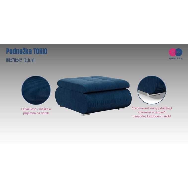Poťah: Látku Poso radíme medzi velúrovú tkaninu. Jedná sa o tkaninu podobnú plyšu s krátkym vlasom.Látka Poso je vyrobená zo 100% polyesteru.Svojim typickým vzhľadom pripomína menčester. Vyznačuje sa dostatočnou pevnosťou a odolnosťou.