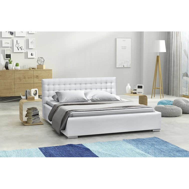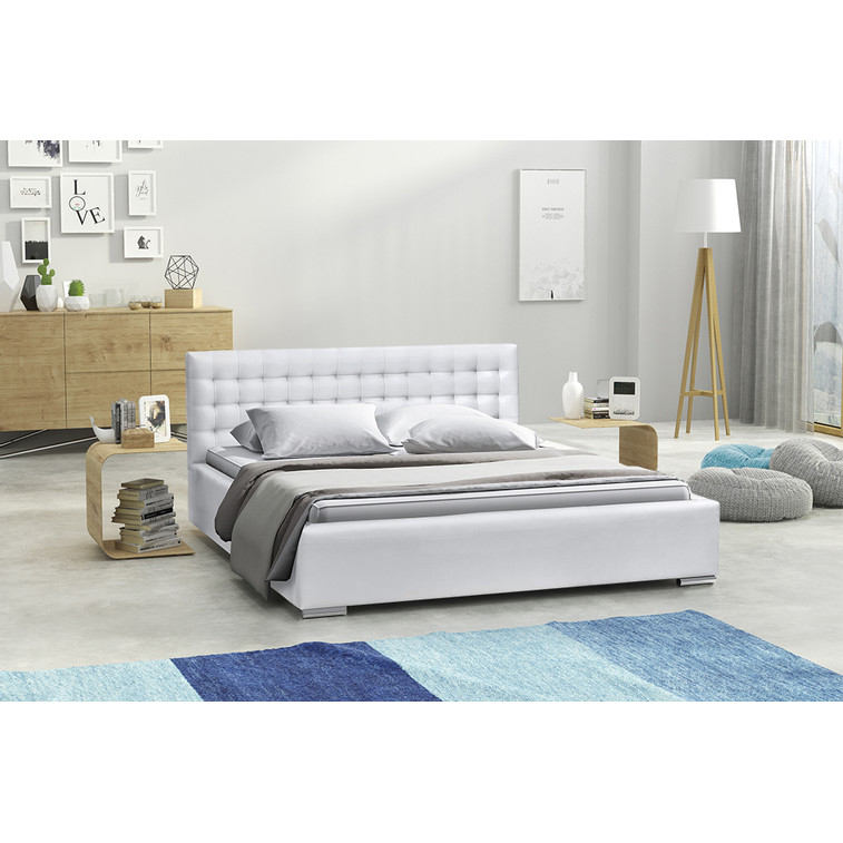 Posteľ IAN 19 STANDARD 180x200 cm - strieborné nohy Biela eko-koža