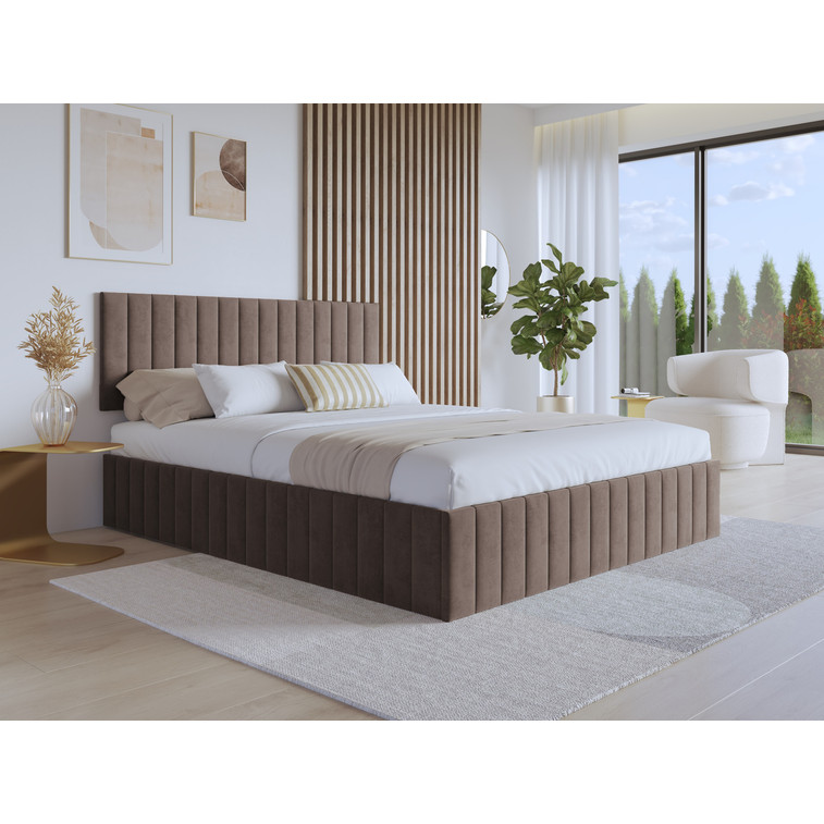 Čalúnené panely na stene za posteľou viditeľné na fotografii nie sú súčasťou ponuky.