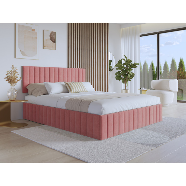 Čalúnené panely na stene za posteľou viditeľné na fotografii nie sú súčasťou ponuky.