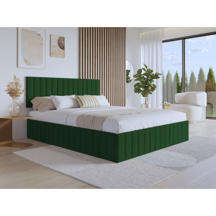 Čalúnené panely na stene za posteľou viditeľné na fotografii nie sú súčasťou ponuky.