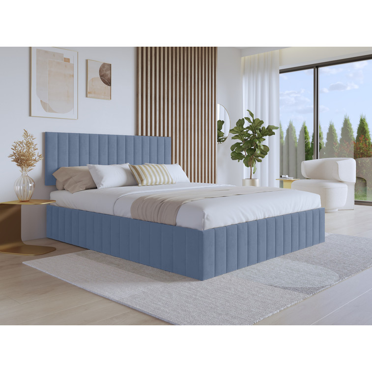 Čalúnené panely na stene za posteľou viditeľné na fotografii nie sú súčasťou ponuky.