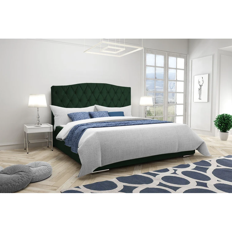 Posteľ STELLA 14 STANDARD 140x200 cm - strieborné nohy Tmavo zelená