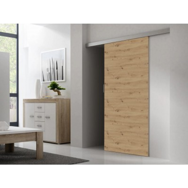 Posuvné dvere GREG 86 cm. Pokiaľ chcete ideálne využiť priestor vašeho bytu, posuvné dvere sú ideálnym riešením. Môžete je využiť ako oddelenie dvoch miestoností, alebo ako dvere do skrine alebo šatne. Možnosť namontovať na pravú i ľavú stranu. Vzdialenosť medzi dvermi a stenou je 1 cm.