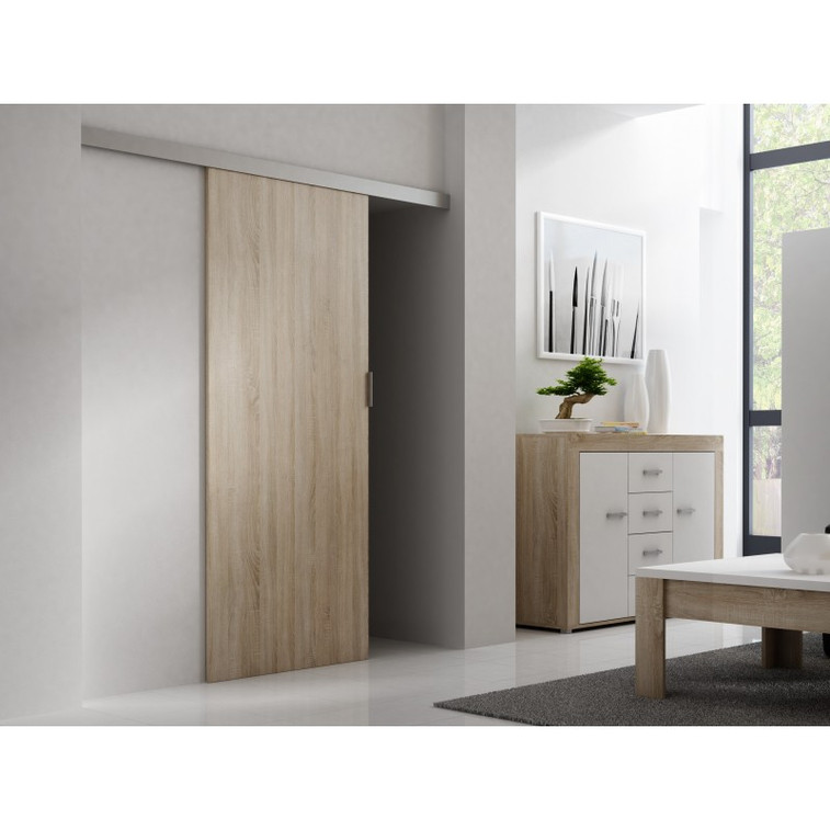 Posuvné dvere Greg 86 cm. Pokiaľ chcete ideálne využiť priestor vášho bytu, posuvné dvere sú ideálnym riešením. Môžete ich využiť ako oddelenie dvoch miestností, alebo ako dvere do skrine či šatne. Možnosť namontovať na pravú aj ľavú stranu. Dvere majú jedno pevné hliníkové madlo.