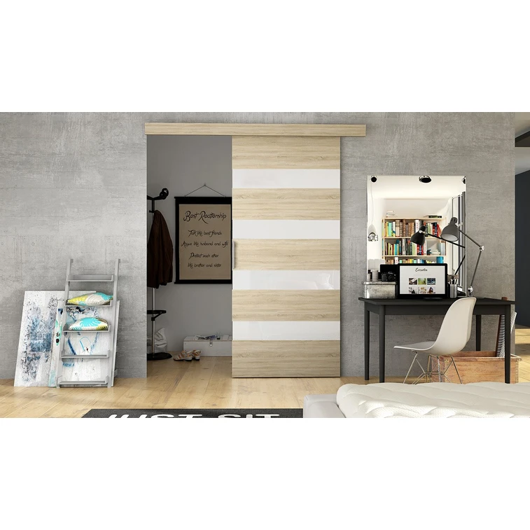 Posuvné dvere MARTI V. Pokiaľ chcete ideálne využiť priestor vášho bytu, posuvné dvere sú ideálnym riešením. Môžete ich využiť ako oddelenie dvoch miestností, alebo ako dvere do skrine či šatne. Možnosť namontovať na pravú aj ľavú stranu. Dvere majú jedno pevné hliníkové madlo.