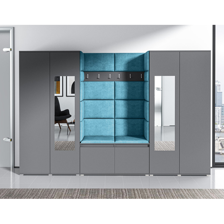 Predsieňová stena AMI 10 Azúrová Grafit So zrkadlom