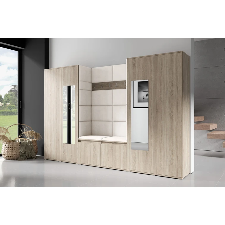 Predsieňová stena AMI 10 Krémová Dub sonoma So zrkadlom