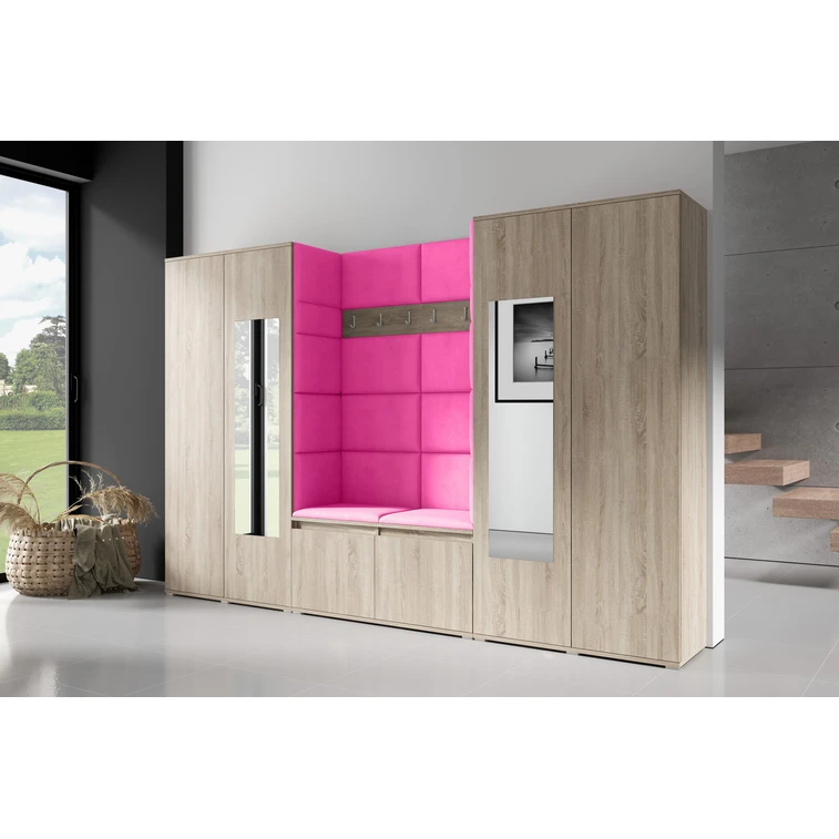 Predsieňová stena AMI 10 Ružová Dub sonoma So zrkadlom