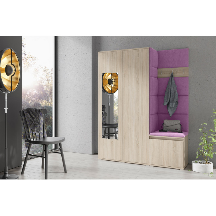 Predsieňová stena AMI 11 Fialová Dub sonoma So zrkadlom