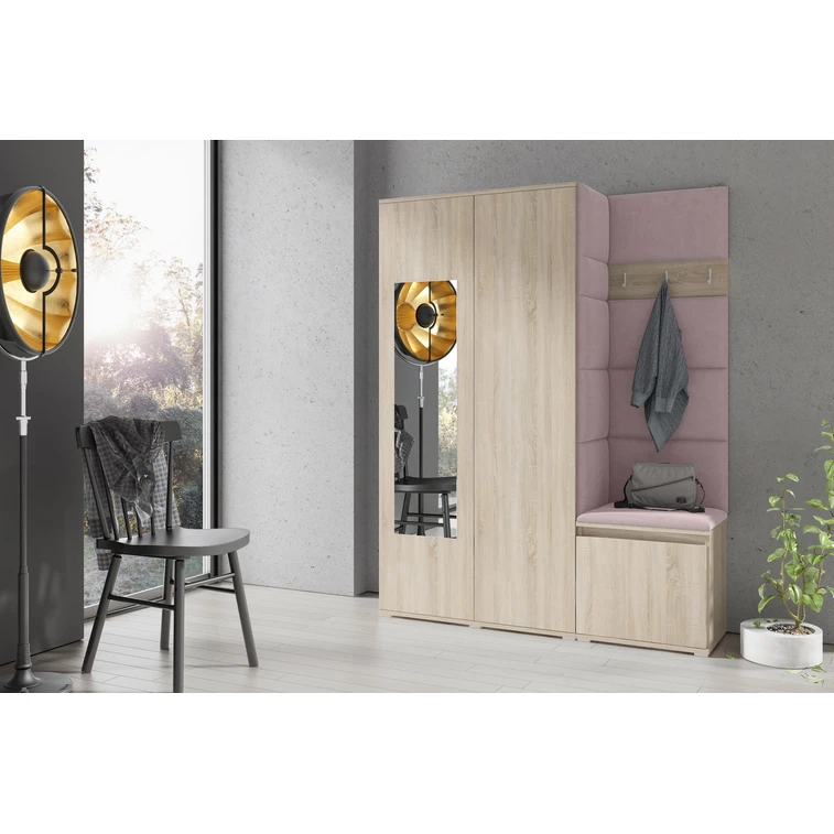 Predsieňová stena AMI 11 Svetloružová Dub sonoma So zrkadlom