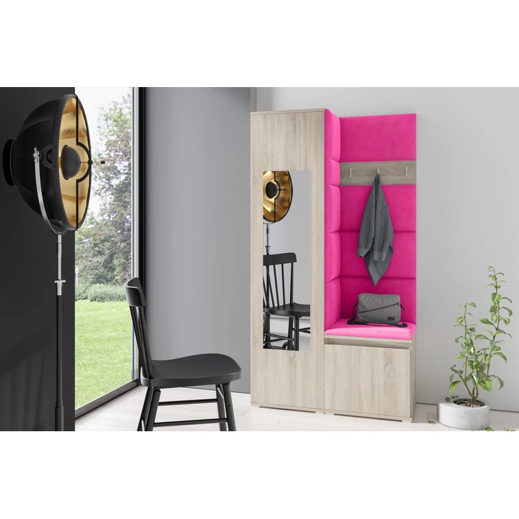 Predsieňová stena AMI 13 Ružová Dub sonoma So zrkadlom