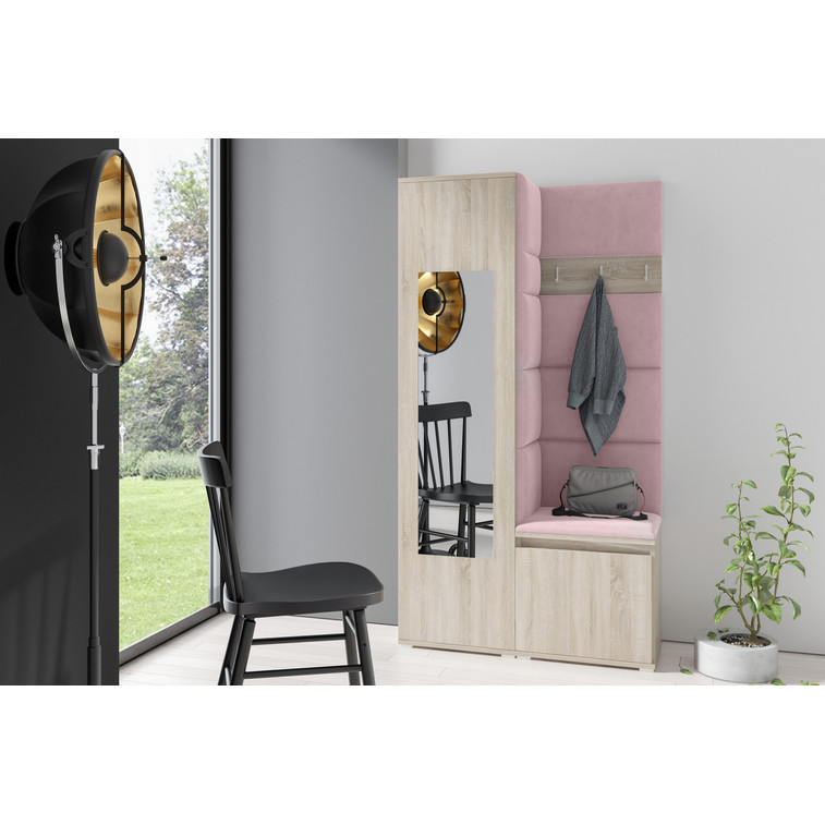 Predsieňová stena AMI 13 Svetloružová Dub sonoma So zrkadlom