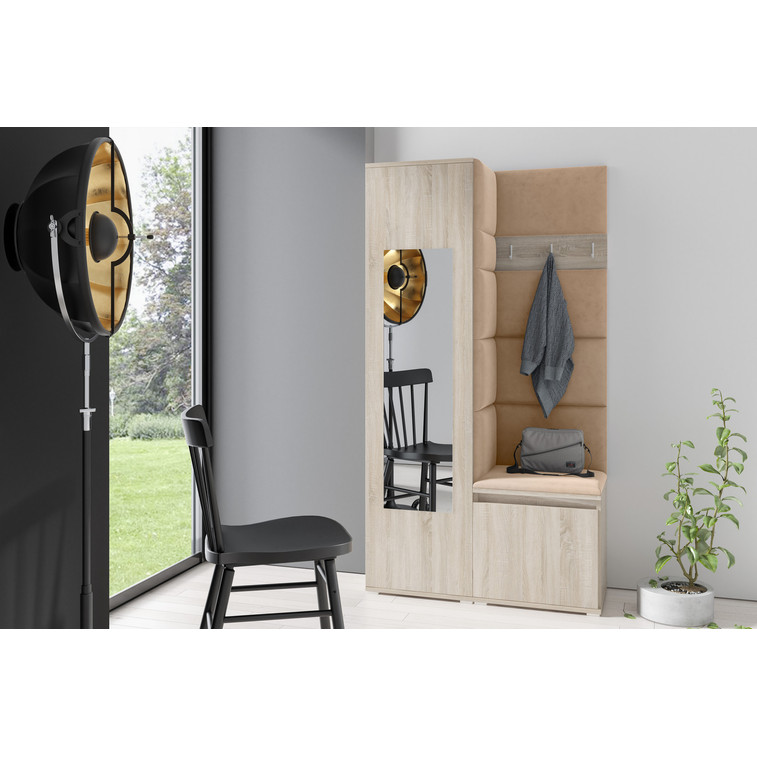 Predsieňová stena AMI 13 Tmavobéžová Dub sonoma So zrkadlom