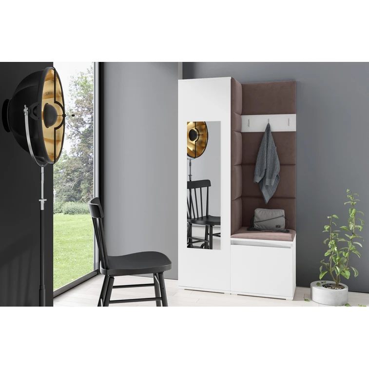 Predsieňová stena AMI 13 Tmavohnedá Biela So zrkadlom