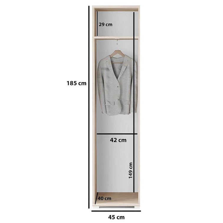 Celkový rozmer steny: výška 185 cm, šírka 235 cm, hĺbka 40 cm