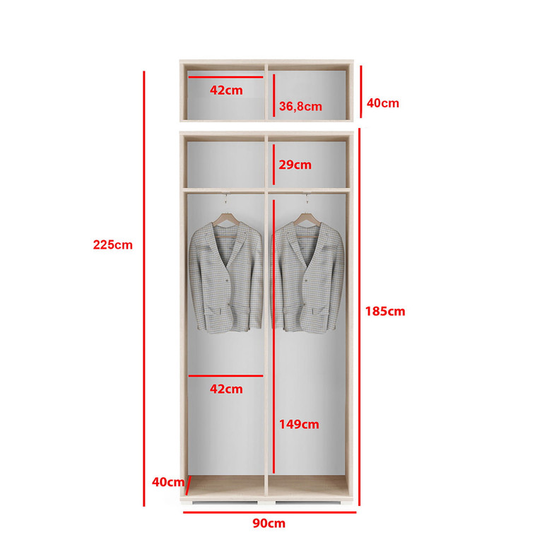Celkový rozmer steny: výška 225 cm, šírka 190 cm, hĺbka 40 cm