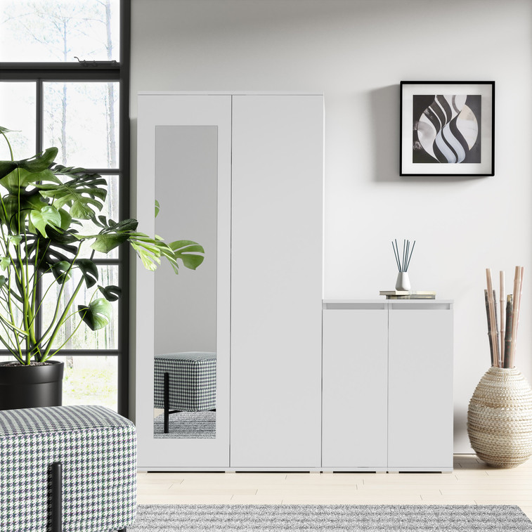 Predsieňová stena Emi 24. Obsahuje: 1x šatníková skriňa so zrkadlom, 1x komoda.