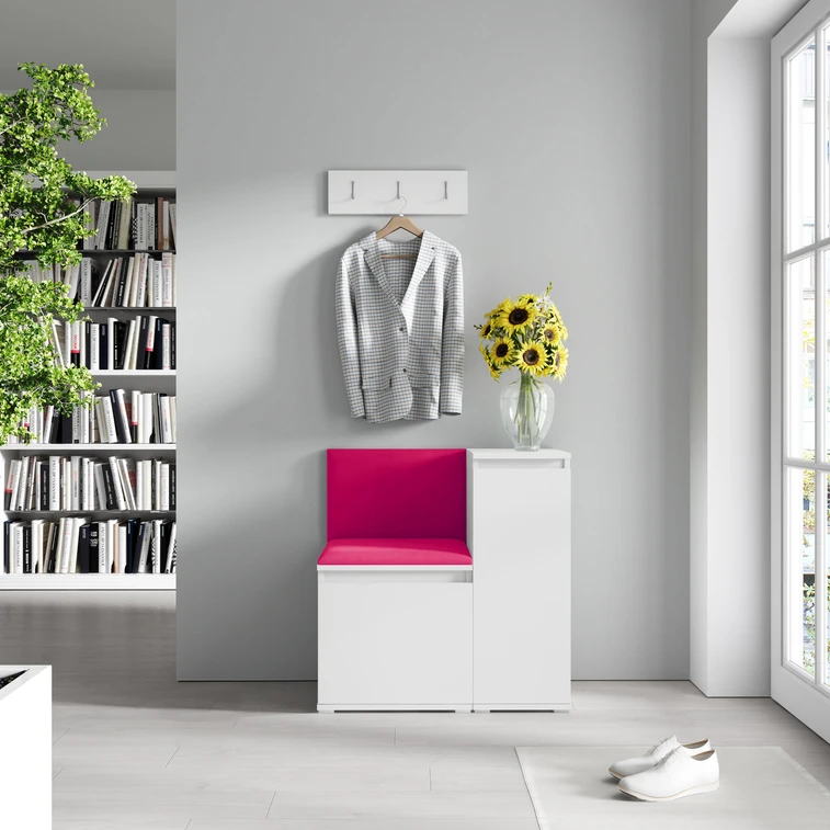 Predsieňová stena Emi 30. Obsahuje: 1x komoda, 1x botník, 1x vešiak, 2x čalúnené panely. Čalúnené panely sa montujú priamo na stenu a na šatníkovú skriňu pomocou lepidla. Lepidlo nie je súčasťou balenia.