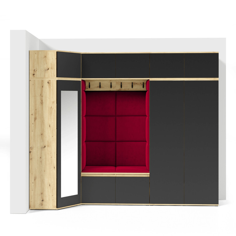 Predsieňová stena AMI 39 Červená Dub artisan + čierna