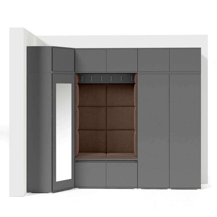Moderná predsieňová stena Ami 39, je praktický prvok do vstupných priestorov vášho domu. Predsieňová stena obsahuje čalúnené panely, ktoré sa montujú priamo na stenu za pomoci lepidla.