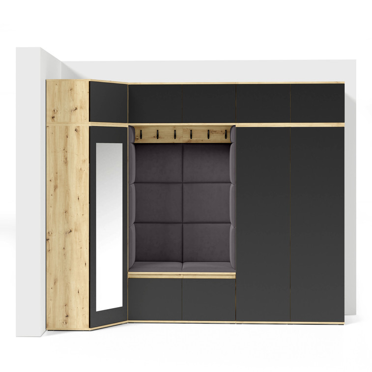 Predsieňová stena AMI 39 Tmavosivá Dub artisan + čierna