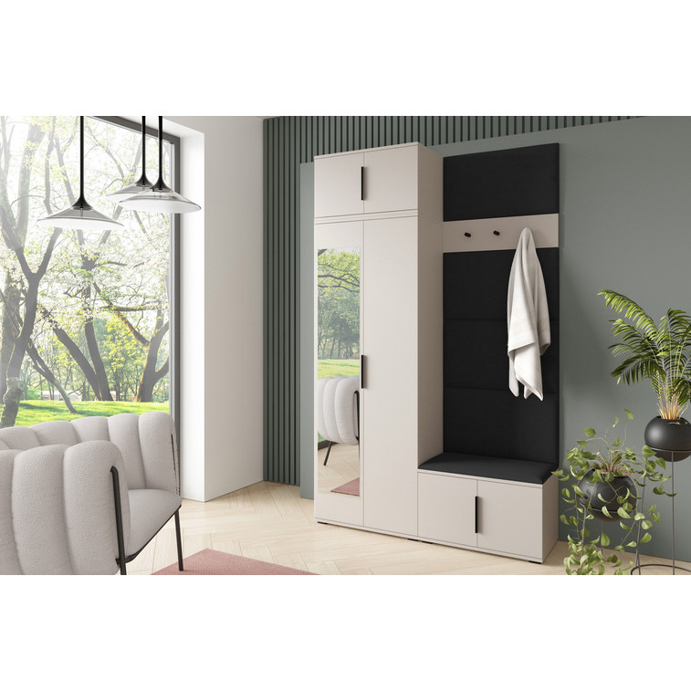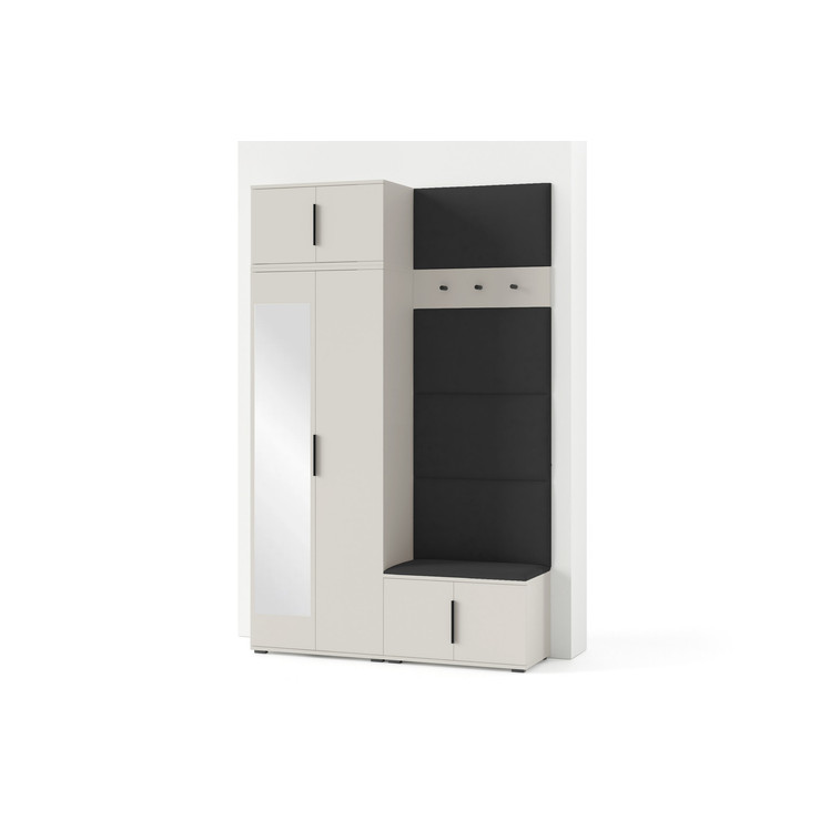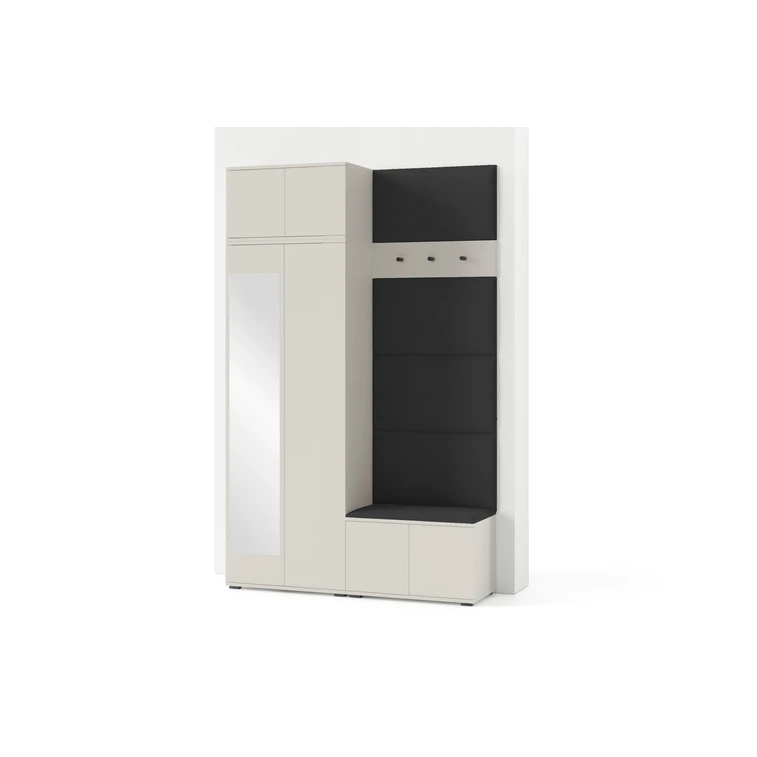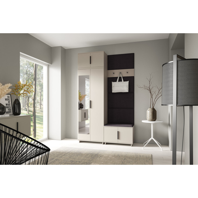 Je to praktický prvok do vstupných priestorov vášho domu. Predsieňová stena obsahuje čalúnené panely, ktoré sa montujú priamo na stenu za pomoci lepidla. Poťah panelov je tkanina Trinity. Predsieňová stena sa skladá z niekoľkých častí. Táto sada obsahuje: 1x šatníkovú skriňu, 1x nadstavba, 1x botník, vešiak, 5 panelov.