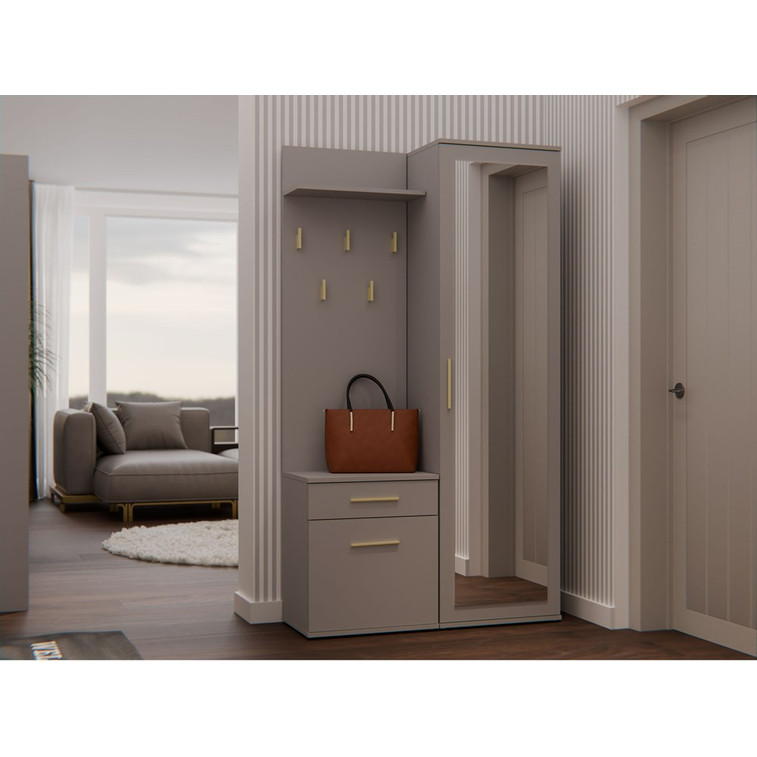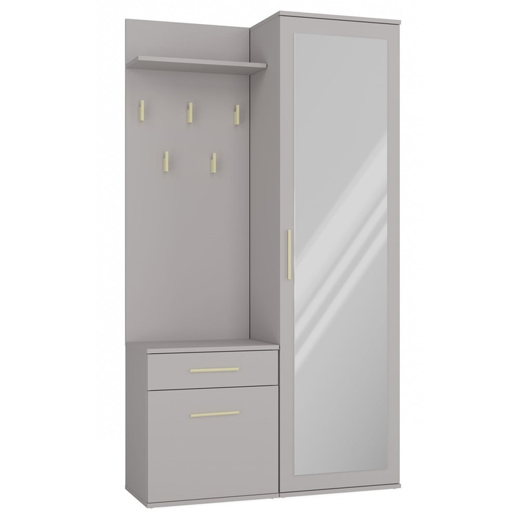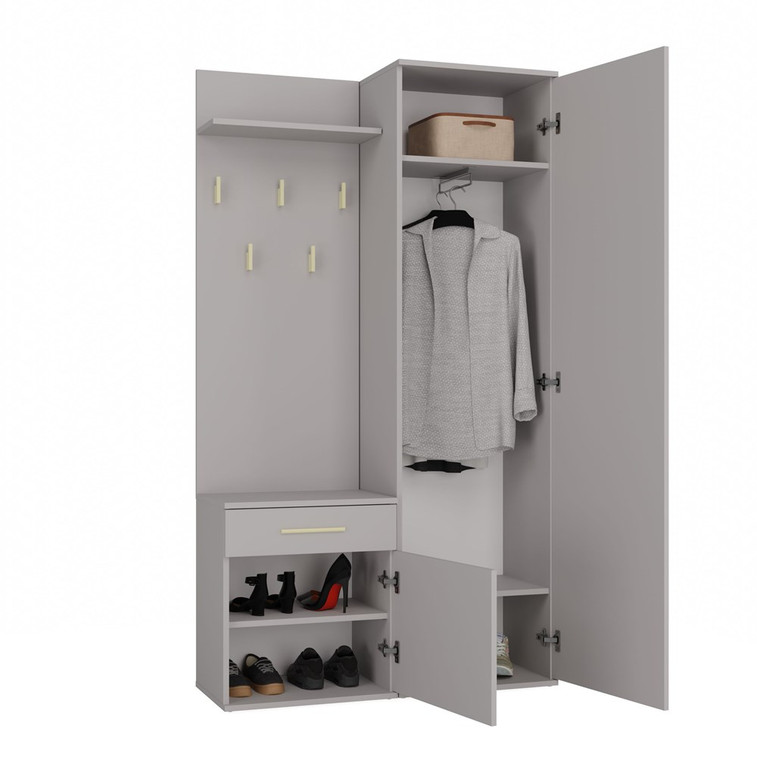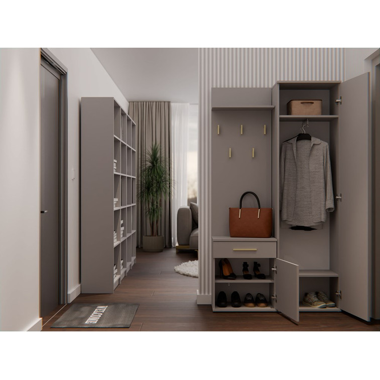 Predsieňová stena DUO, je moderný a praktický prvok do vstupných priestorov vášho domu. Skladá sa z niekoľkých častí.